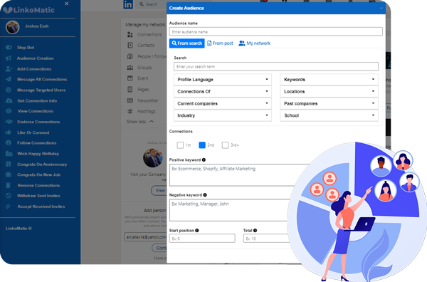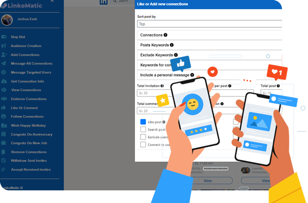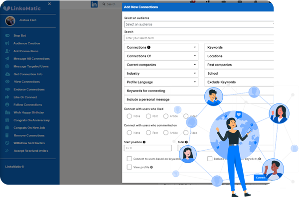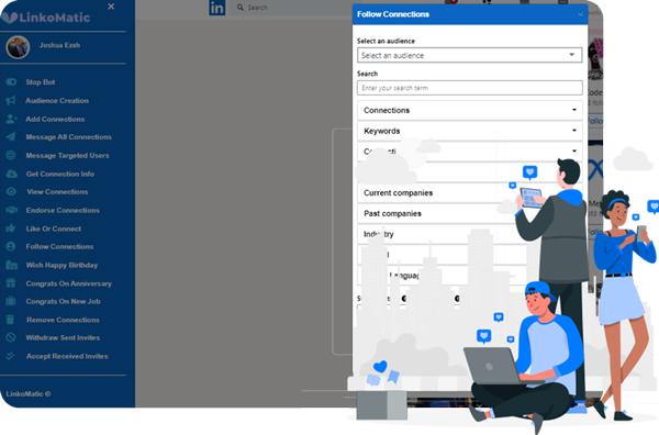 LinkoMatic is a revolutionary new software app that takes everything that used to be time-consuming and complicated about LinkedIn and makes it simple through the power of advanced automation.