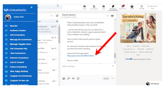 When you look at the income potential of being able to automated LinkedIn for Premium Leads and high ticket payment, getting LinkoMatic right now should be a total no-brainer...